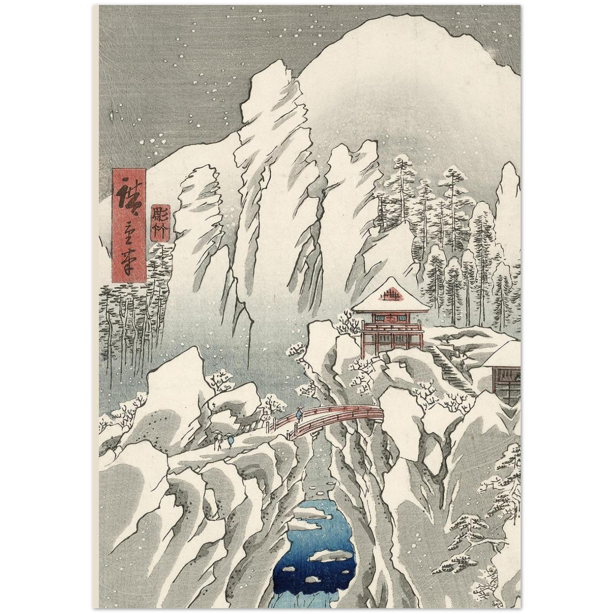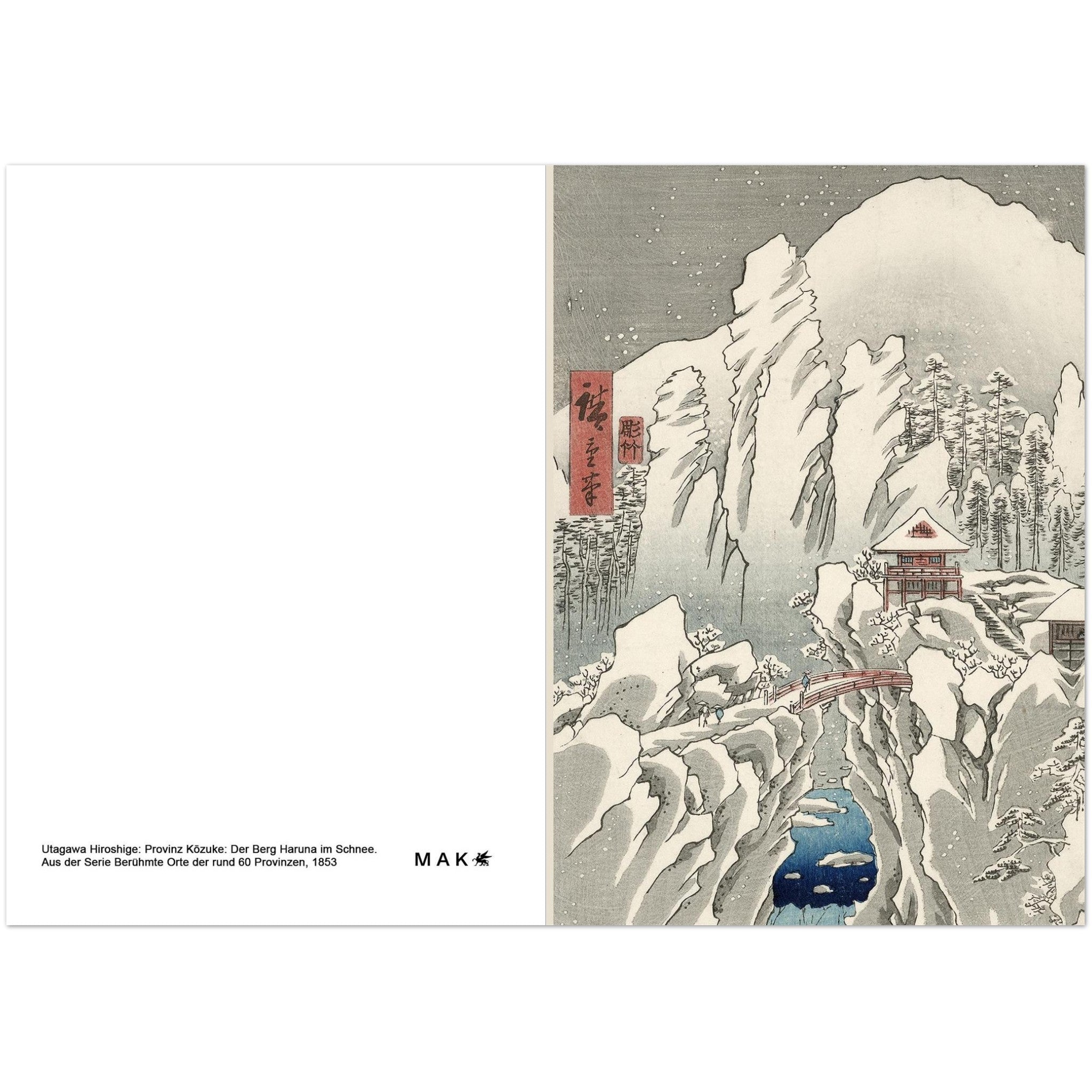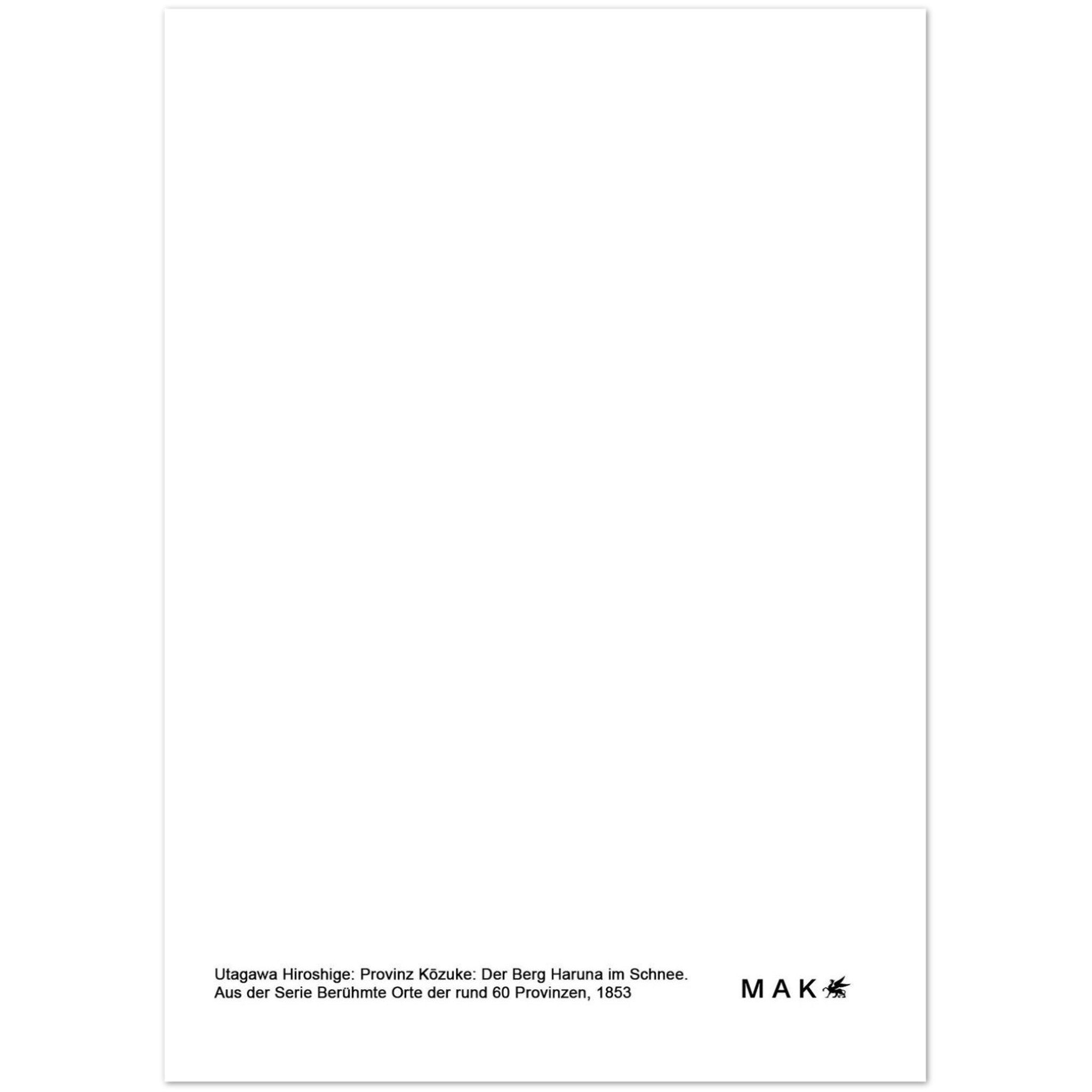 Motiv: Utagawa Hiroshige 'Provinz Kōzuke: Der Berg Haruna im Schnee ', aus der Serie Berühmte Orte der rund 60 Provinzen, 1853.
