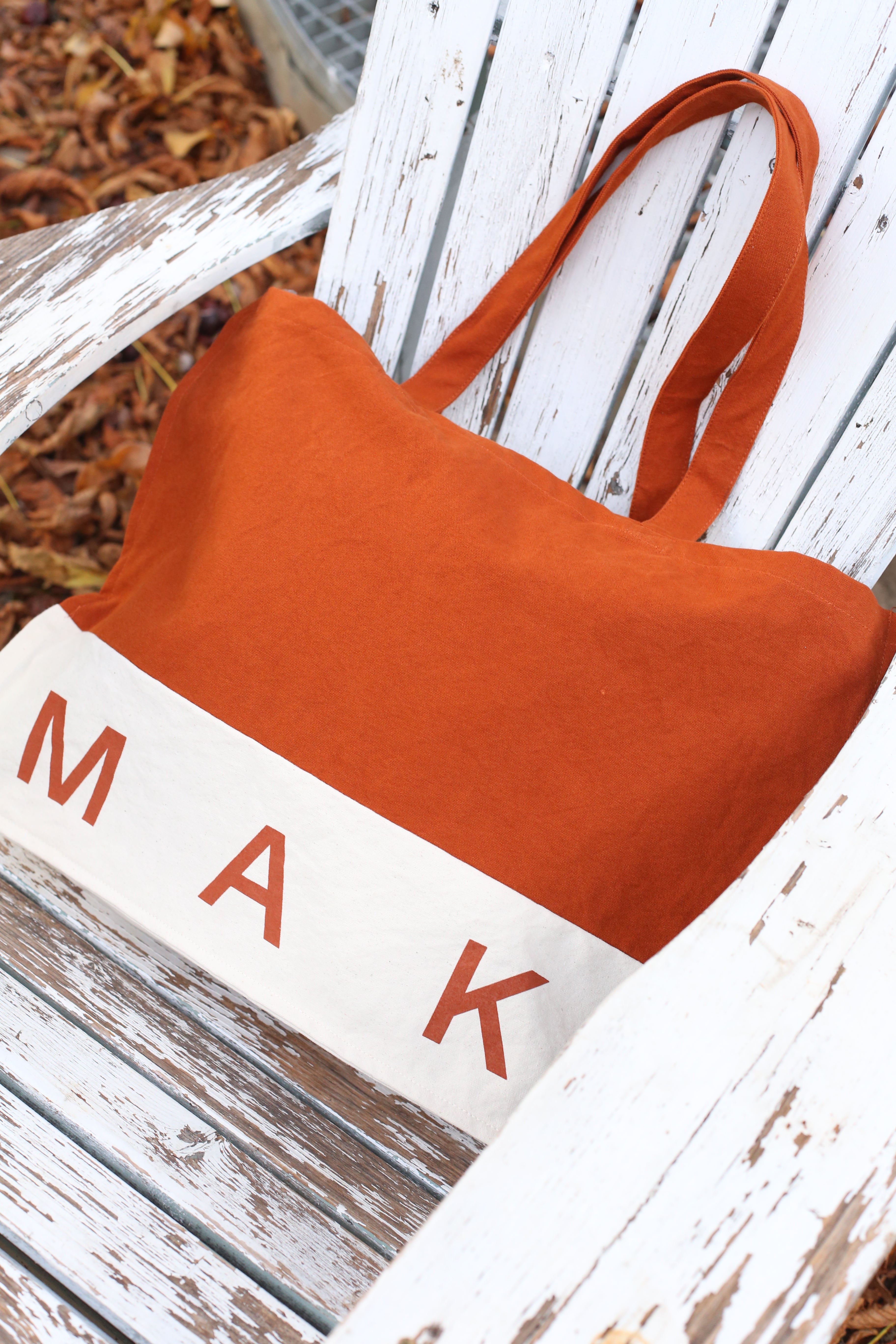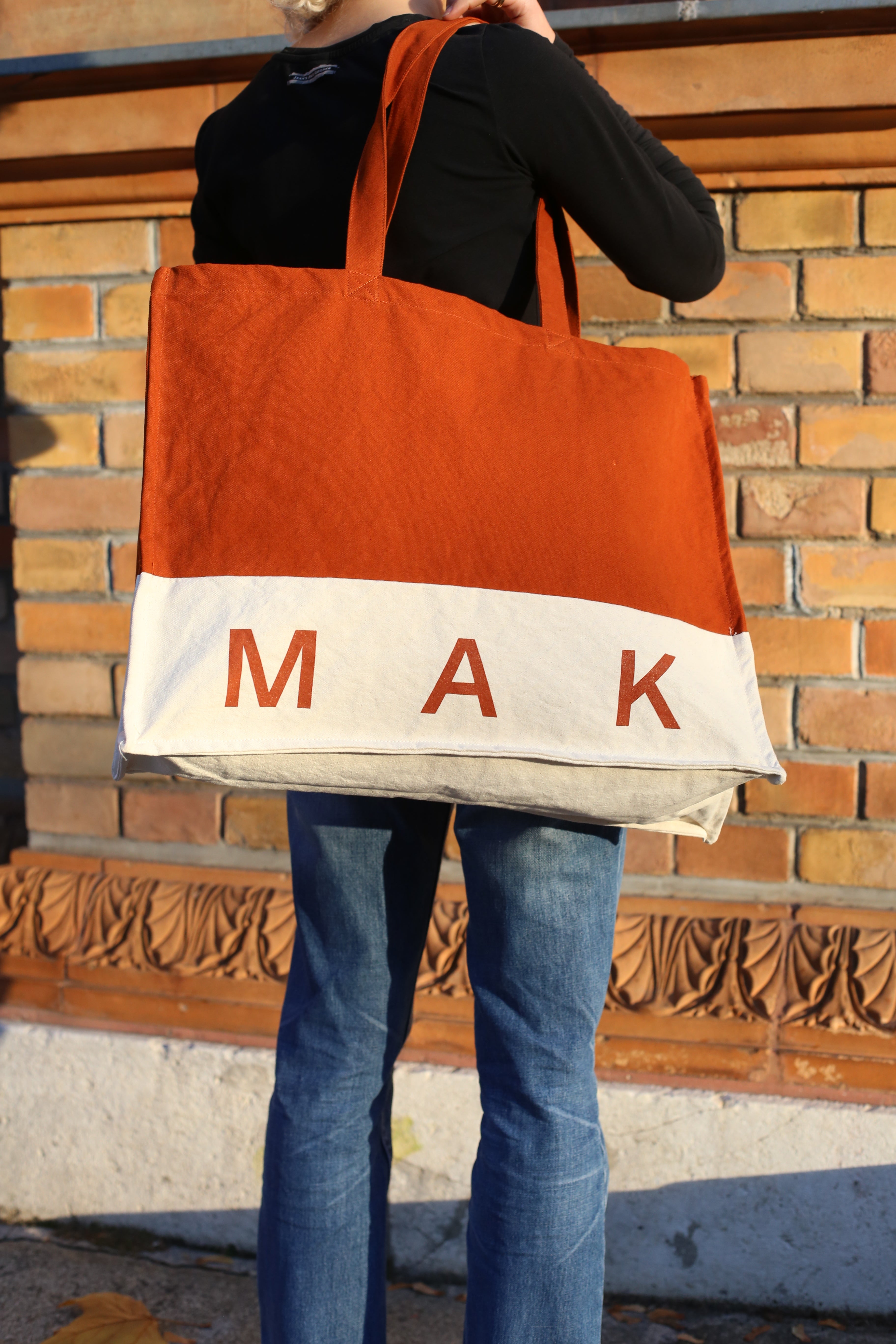 MAK shopper with logo. The bag is made from 100% organic cotton and is available in brown and black.