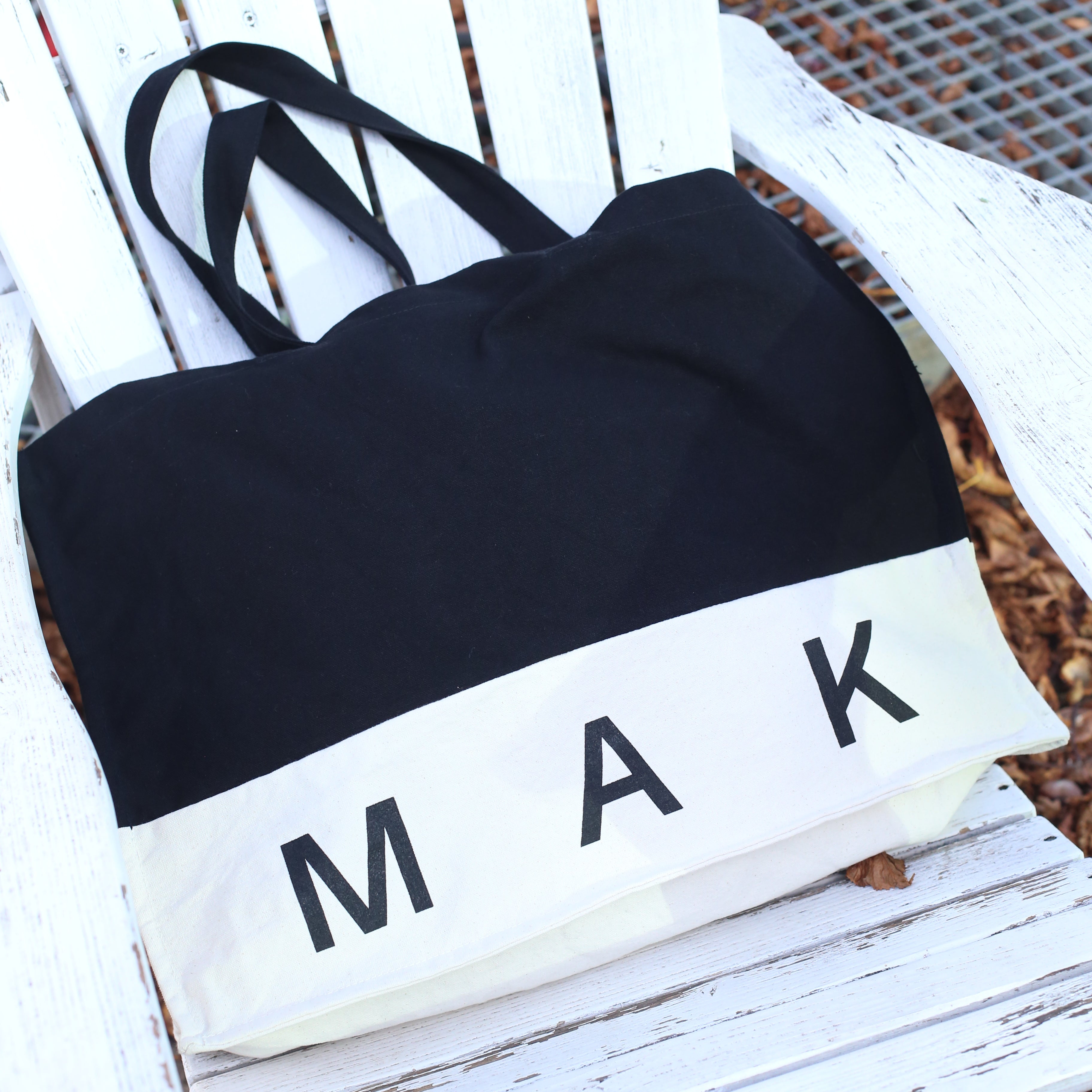 MAK shopper with logo. The bag is made from 100% organic cotton and is available in brown and black.
